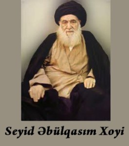 [1] Seyid Əbülqasım Xoyi (v. h. q. 1413 – m. 1993). Mühəqqiq Xoyi dərsdə cəlbedici bəyana və səlis məntiqə malik idi və mövzuları nizamlı, qüsursuz və faydalı şəkildə bəyan edirdi. Tələbə yetişdirməkdə çox müvəffəqiyyət əldə etmişdir. Hal-hazırkı mərcəi-təqlidlərin bəziləri onun tələbələri olmuşlar. Mühəqqiq Xoyi Nəcəfin son güclü mərcəi-təqlidi idi ki, İraka hakim bəəsçilərin illərlə nəzarəti altında qalmışdır. Ondan sonra Nəcəf Hövzəsi dağıldı və Nəcəf fəqihlərinin bir çoxu “BƏƏS” Partiyasının xəbis hakimlərinin əlilə şəhid edildi.